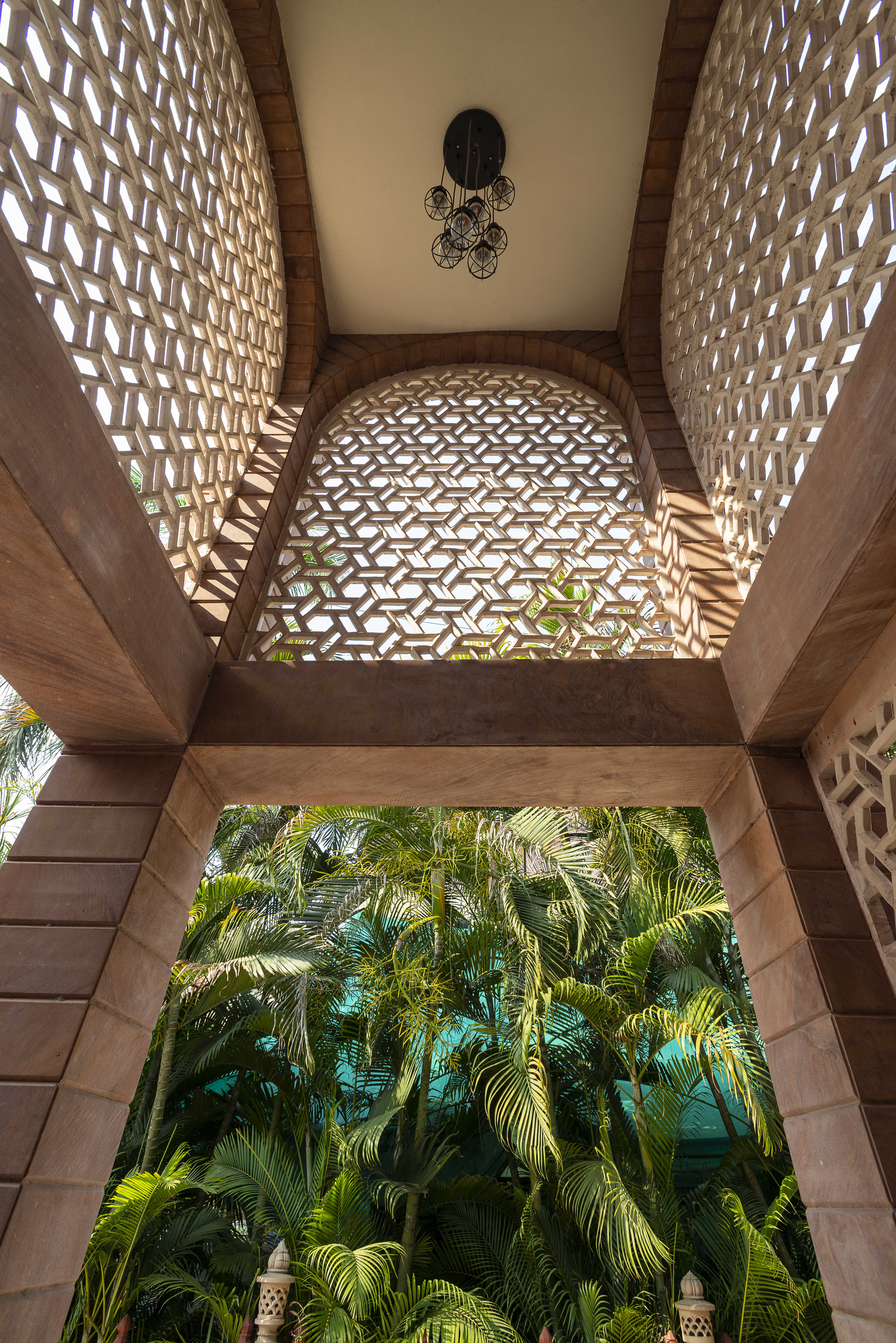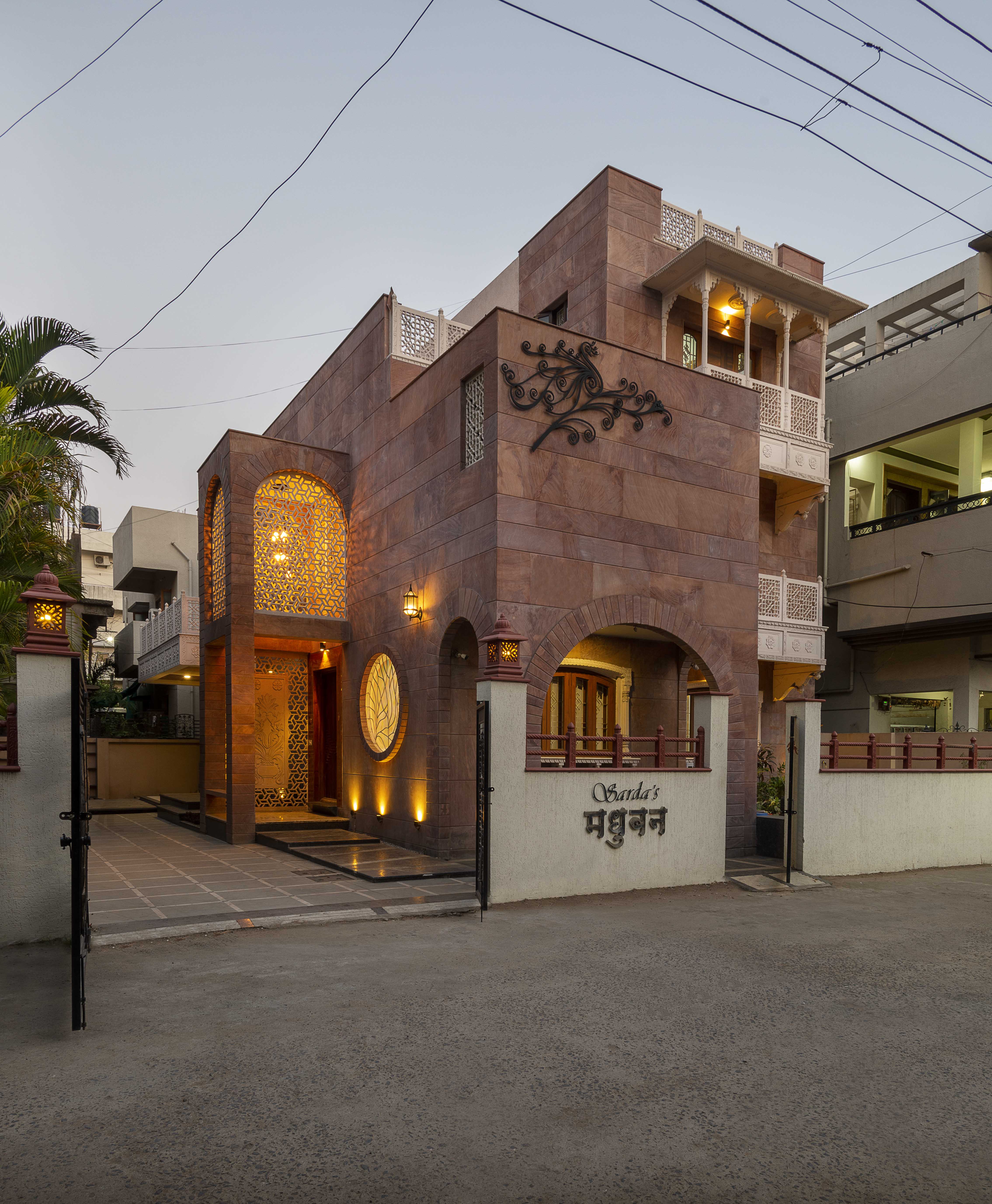 Delicately standing out of the surrounding, the house emerges boldly with clean lines and earthy materials in the old city area of Chandrapur, India. A classic synthesis of the modern interiors and fusion of contemporary and ethnic exteriors, the home has a unique take on the traditional idea of an entrance pavilion.
